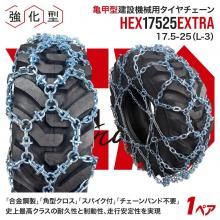 最上級モデル建設機械用スパイク付タイヤチェーン HEXエクストラ 17525 17.5-25 合金鋼亀甲型 1ペア(タイヤ2本分) タイヤショベル ホイールローダー