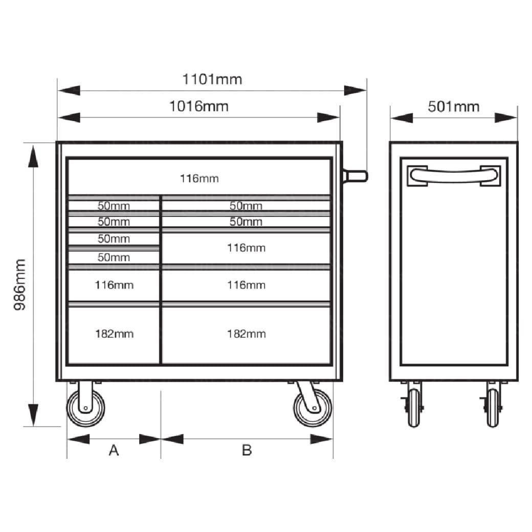 引き出しサイズ(A 左側):284×445×50mm(×4) / 284×445×116mm(×1) / 284×445×182mm(×1)