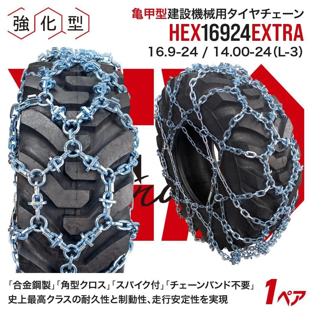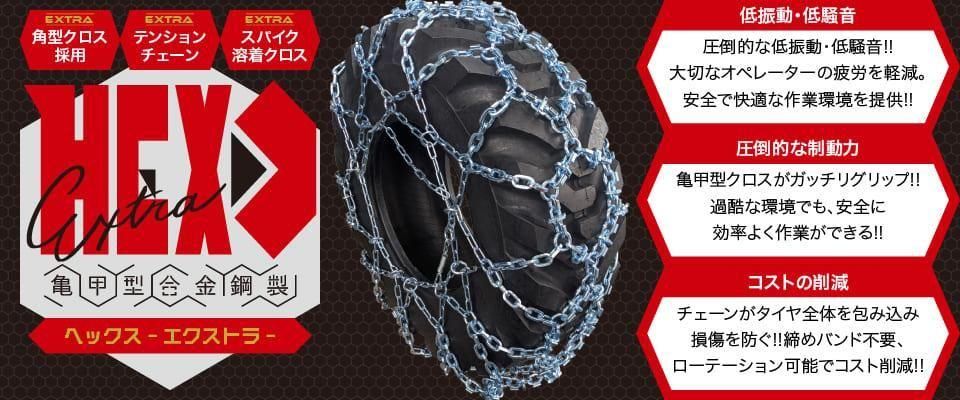 最上級モデル建設機械用スパイク付タイヤチェーン HEXエクストラ 16924/1400-24 16.9-24 14.00-24 合金鋼亀甲型 1ペア(タイヤ2本分) タイヤショベル ホイールローダーのネット通販はJUKO.IN